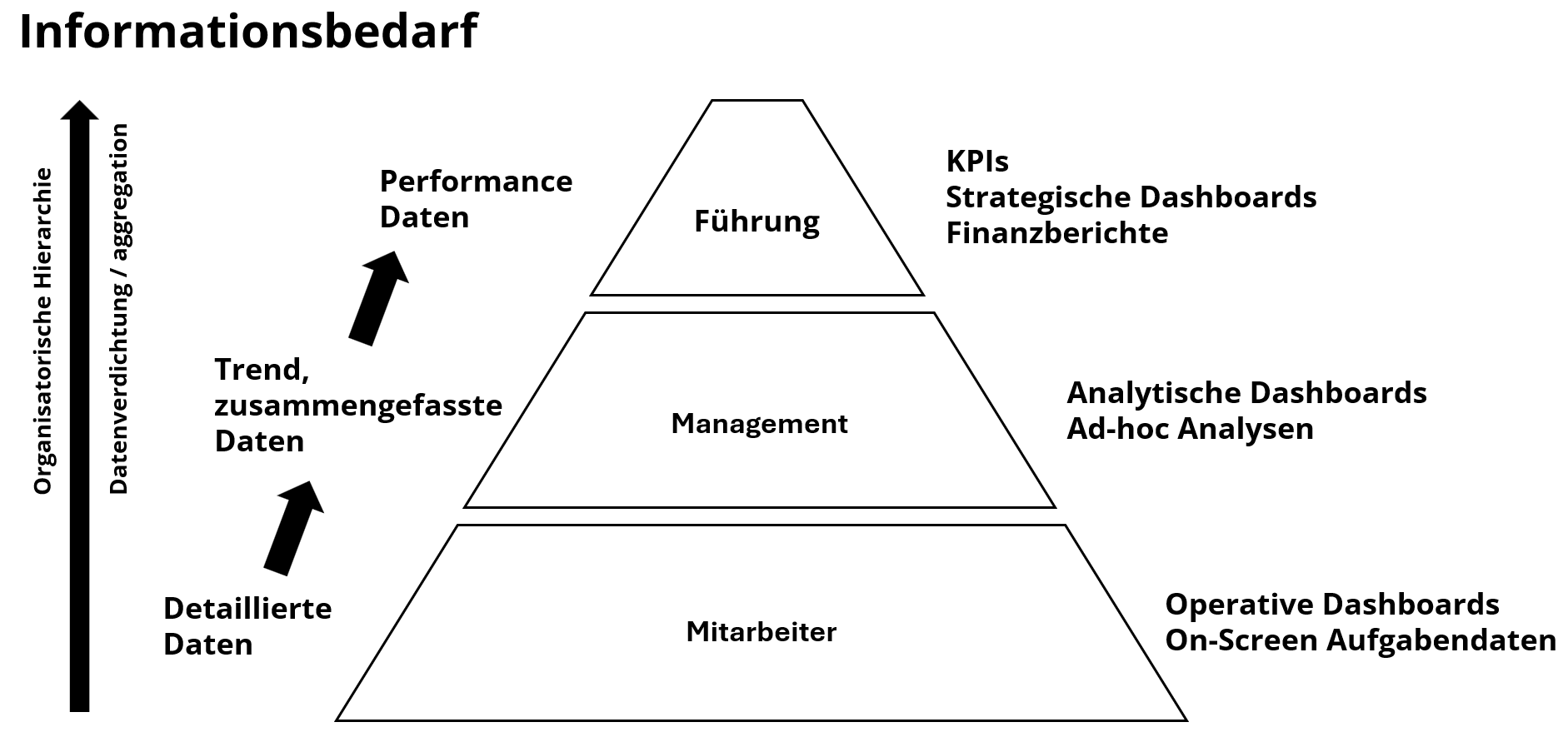 Im Kern führt uns diese Diskussion zu einer grundsätzlichen Frage. Für wen bauen wir eigentlich Dashboards? Wenn wir Organisationen betrachten, sehen wir häufig eine Pyramidenstruktur des Informationsbedarfs.